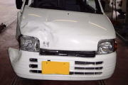 折れ曲がったサイドフレームとフロントホイールエプロン