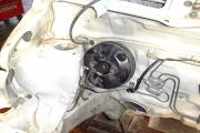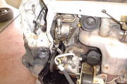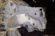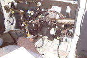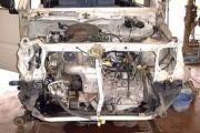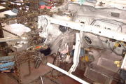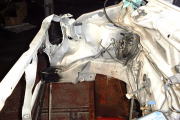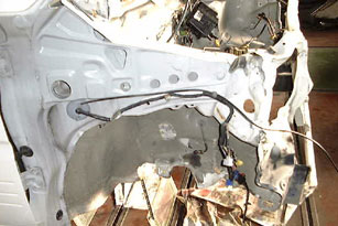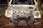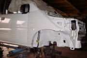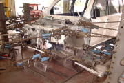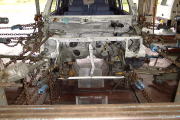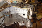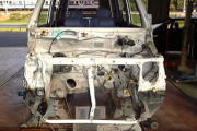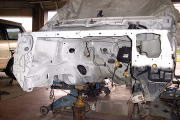 フロア及びサイドメンバーを修正する為に分解された運転席